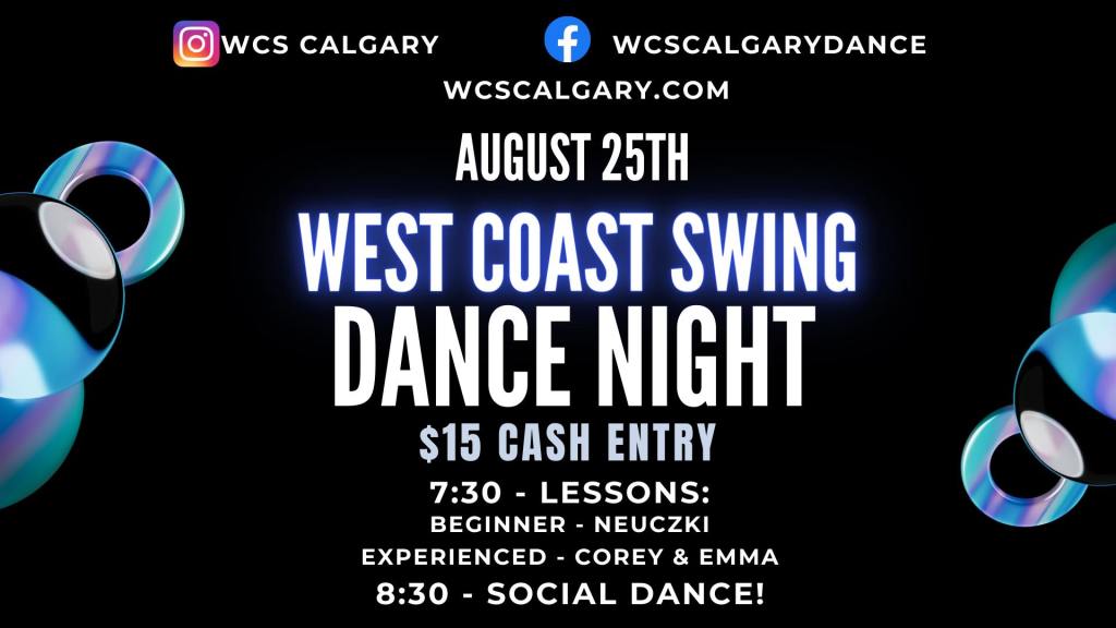 Join us for a West Coast Swing Lesson and Social Dance on August 25th! ![]()