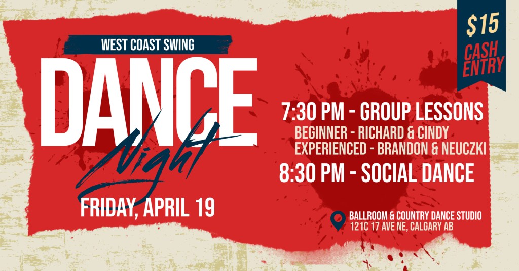 Join us for a night of West Coast Swing Dancing on April 19th!