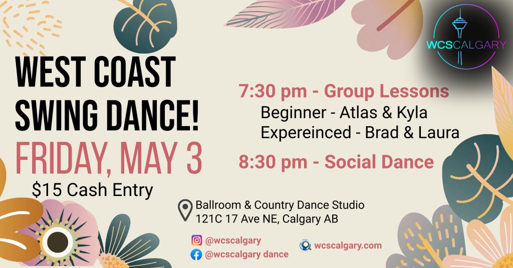 Join us for a night of West Coast Swing Dancing on May 3rd!