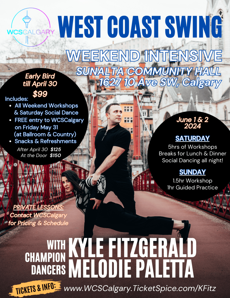 Early bird pricing ends after April 30th!! Reminder if you have an early bird ticket you get into the Friday May 31st WCSCalgary dance for FREE!!!