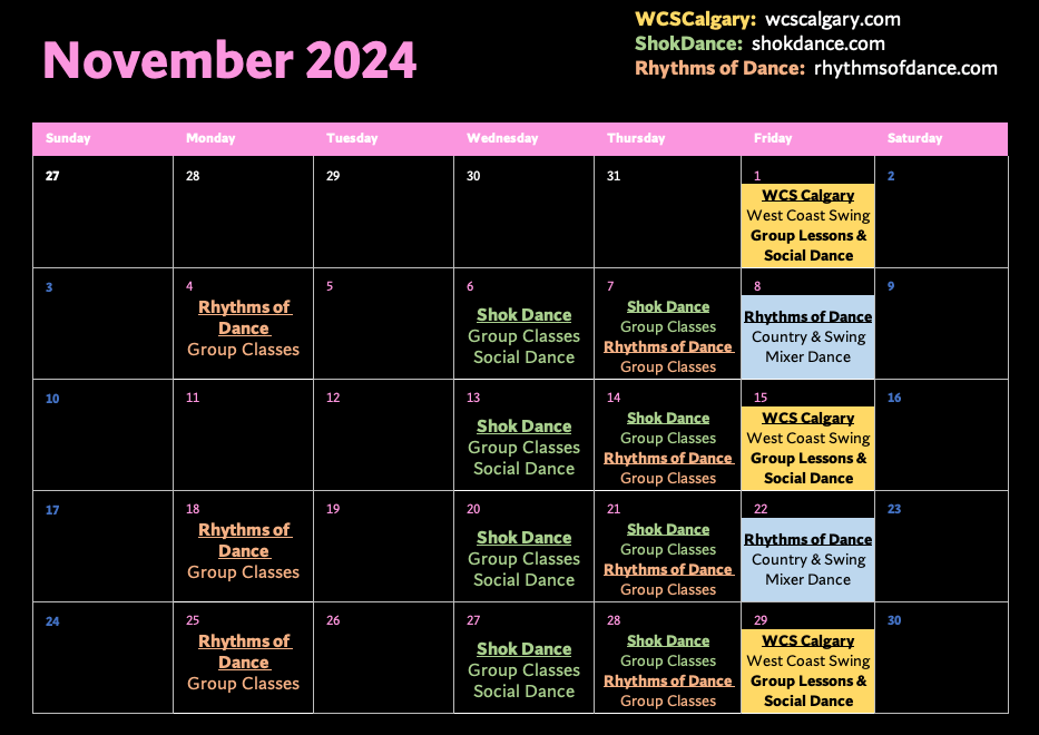 November West Coast Swing Calendar! ❄️
