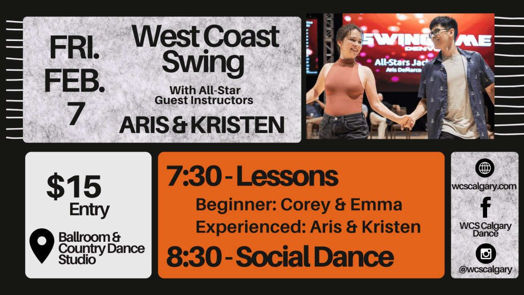Join us on Friday, February 7th, for a special night of West Coast Swing Dancing!![]()