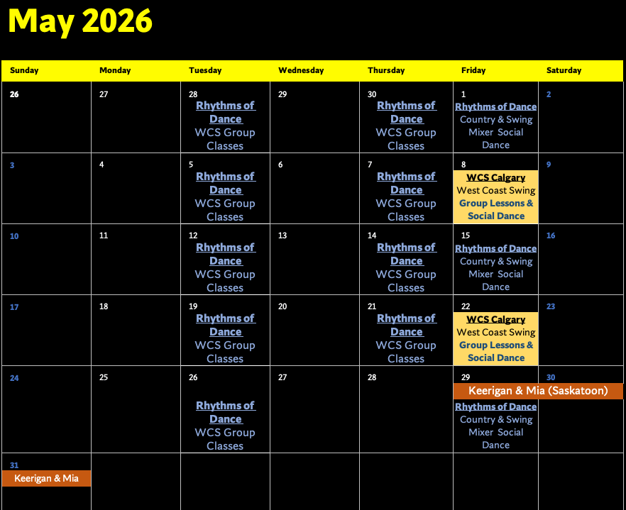 WCS Calendars for May & June