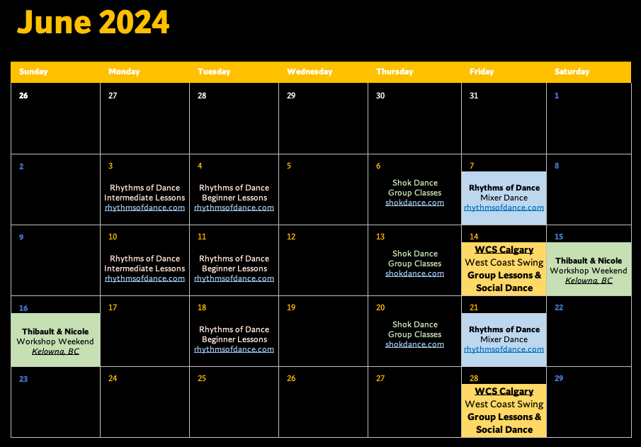 West Coast Swing Classes and Socials for June! 🗓